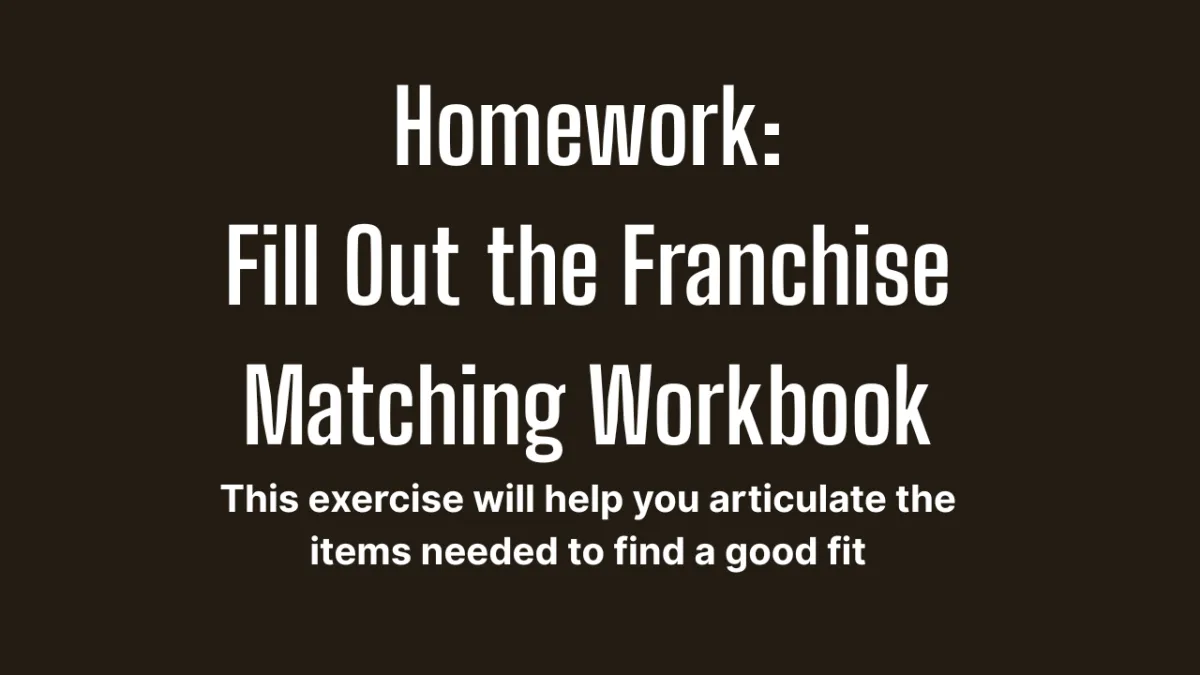2) On your call with Josh, we are going to answer any questions you have from the course (so we can go back and make the course better) and we will ask you if you want us to find franchise matches for you.