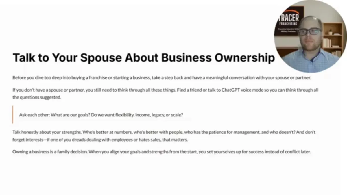 Access to the Tracer Franchising GPT to ask questions to an AI trained on the course